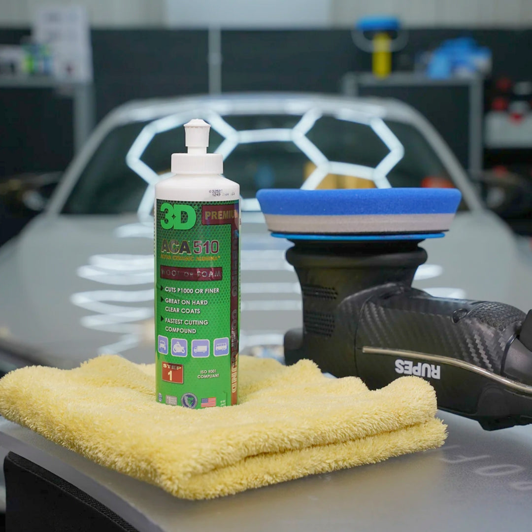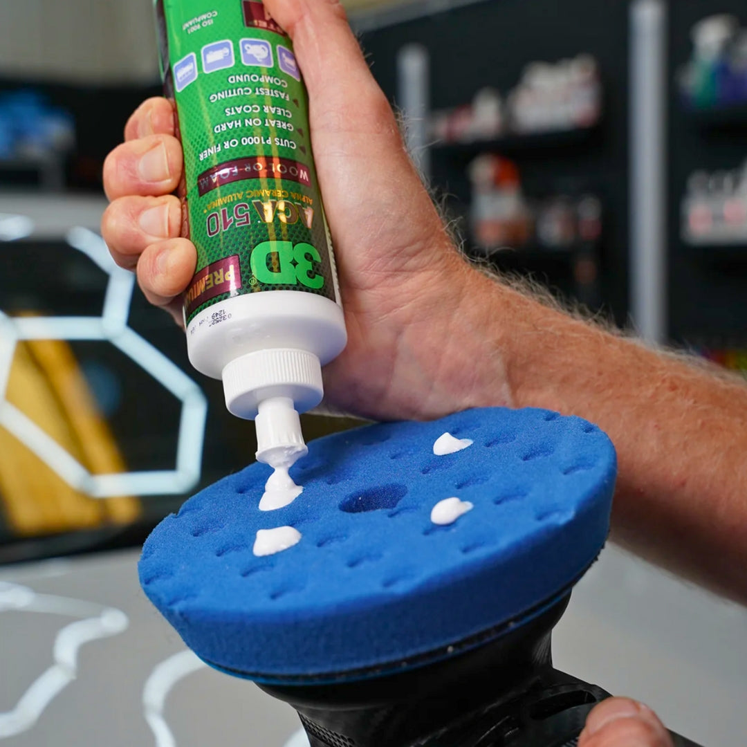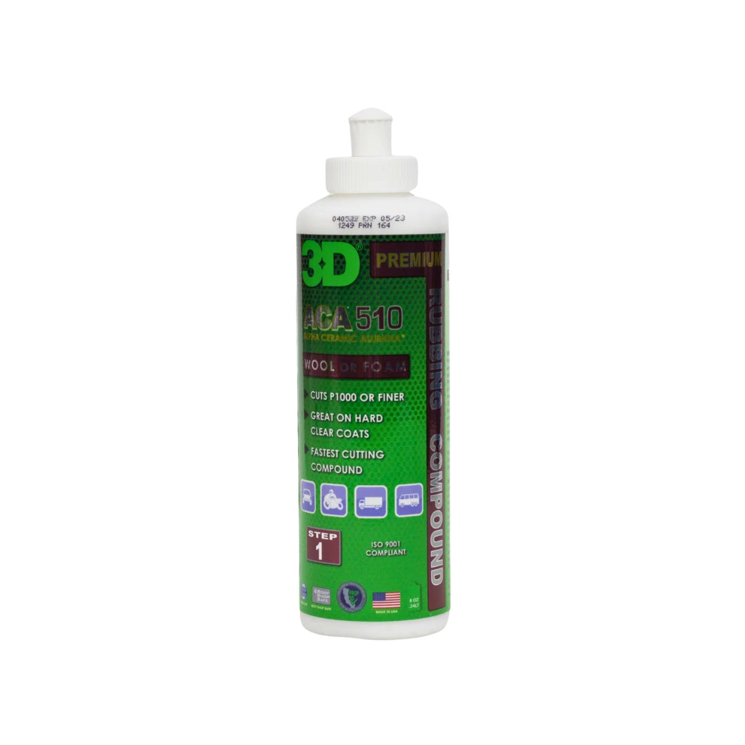 ACA 510 xtra rubbing compound de 3D car care es un pulimento de alúmina alfa cerámica, considerado un abrasivo nivelador. Este producto ofrece mayores velocidades de corte con baja generación de temperatura, lo que permite trabajar incluso con las pinturas más duras del mercado.