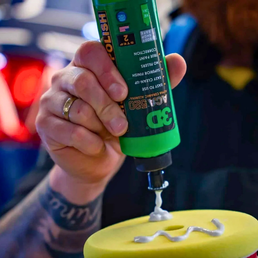 ACA 520 Finishing Polish de 3D car care es un abrillantador de alúmina alfa cerámica, ofrece mayores velocidades de corte con baja generación de temperatura, lo que permite trabajar incluso con las pinturas más duras del mercado.