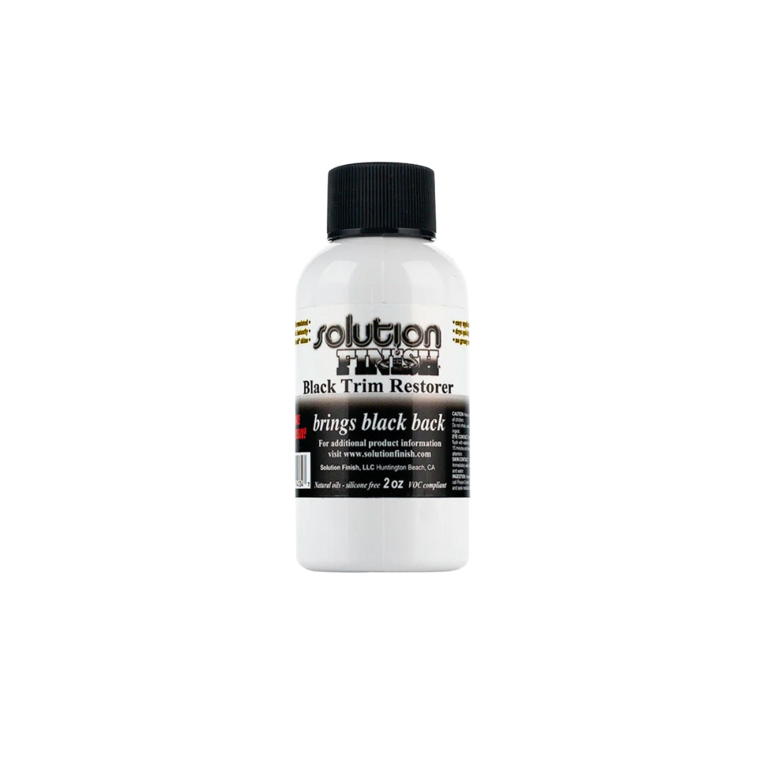 Black Trim Restore de Solution Finish es capaz de restaurar superficies plásticas que han perdido color y están desgastadas, devolviéndoles una tonalidad adecuada. Proporciona un acabado profundo sin brillo ni un “aspecto húmedo”, gracias a su formulación única que combina ingredientes tradicionales con tecnología avanzada de polímeros. Diseñada para uso profesional, esta solución no contiene silicona y utiliza aceites completamente naturales, cumpliendo con las normativas sobre COV.