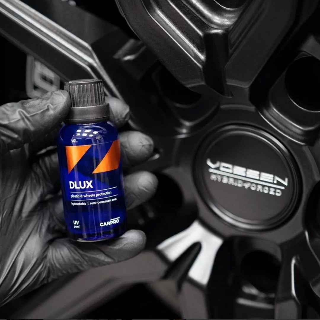 Cquartz Dlux de Carpro es un recubrimiento cerámico diseñado para restaurar y proteger plásticos. Su formulación incluye hidruro de silicio de alta calidad, con más del 50% de óxido de silicio puro. Este recubrimiento ofrece múltiples beneficios, como un brillo mejorado, alta hidrofobicidad, facilidad de limpieza y protección contra rayos UV, productos químicos, daños medioambientales, temperaturas extremas y suciedad por tráfico.