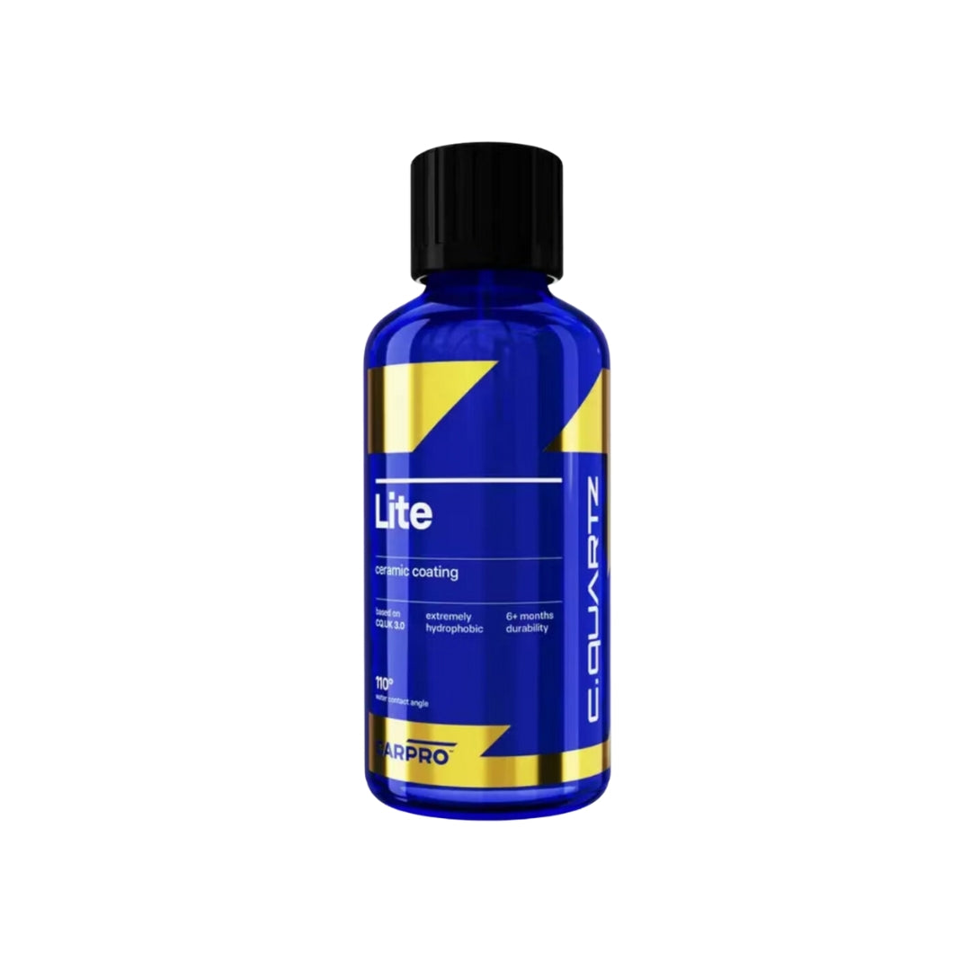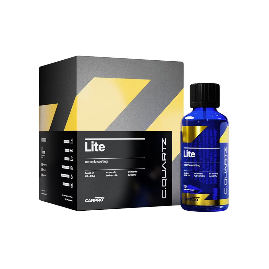 Cquartz Lite de Carpro es un recubrimiento cerámico que destaca por su facilidad de uso y aplicación. Su tecnología se basa en la gama Cquartz UK. Principalmente, se utiliza como cerámico independiente, pero también puede funcionar como capa final de otros productos Cquartz. La duración en las superficies puede alcanzar 12 meses o más, dependiendo del cuidado que se le dé al recubrimiento cerámico. La cobertura por capa varía de 15 ml a 50 ml, según el método de aplicación, y su espesor promedio es de 1 micra.