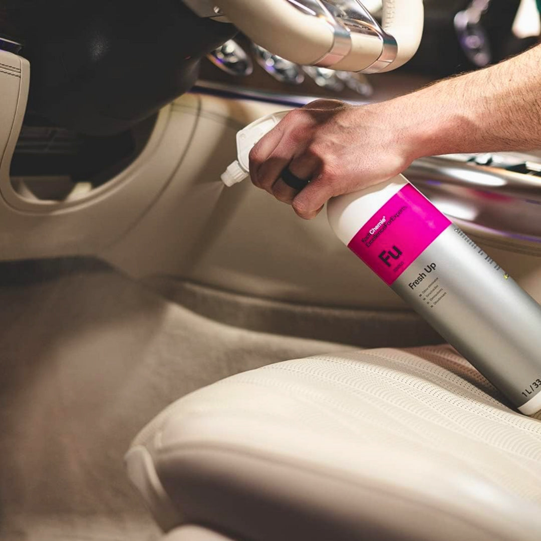 Fresh Up de Koch Chemie es un eliminador de olores diseñado para interiores de automóviles y otros espacios cerrados. Su formulación lista para usar es eficaz en la eliminación de aromas como el humo de cigarrillo, olores de mascotas y procesos de descomposición, dejando un fragancia fresca. En situaciones difíciles o problemáticas, se sugiere utilizar un generador de ozono.