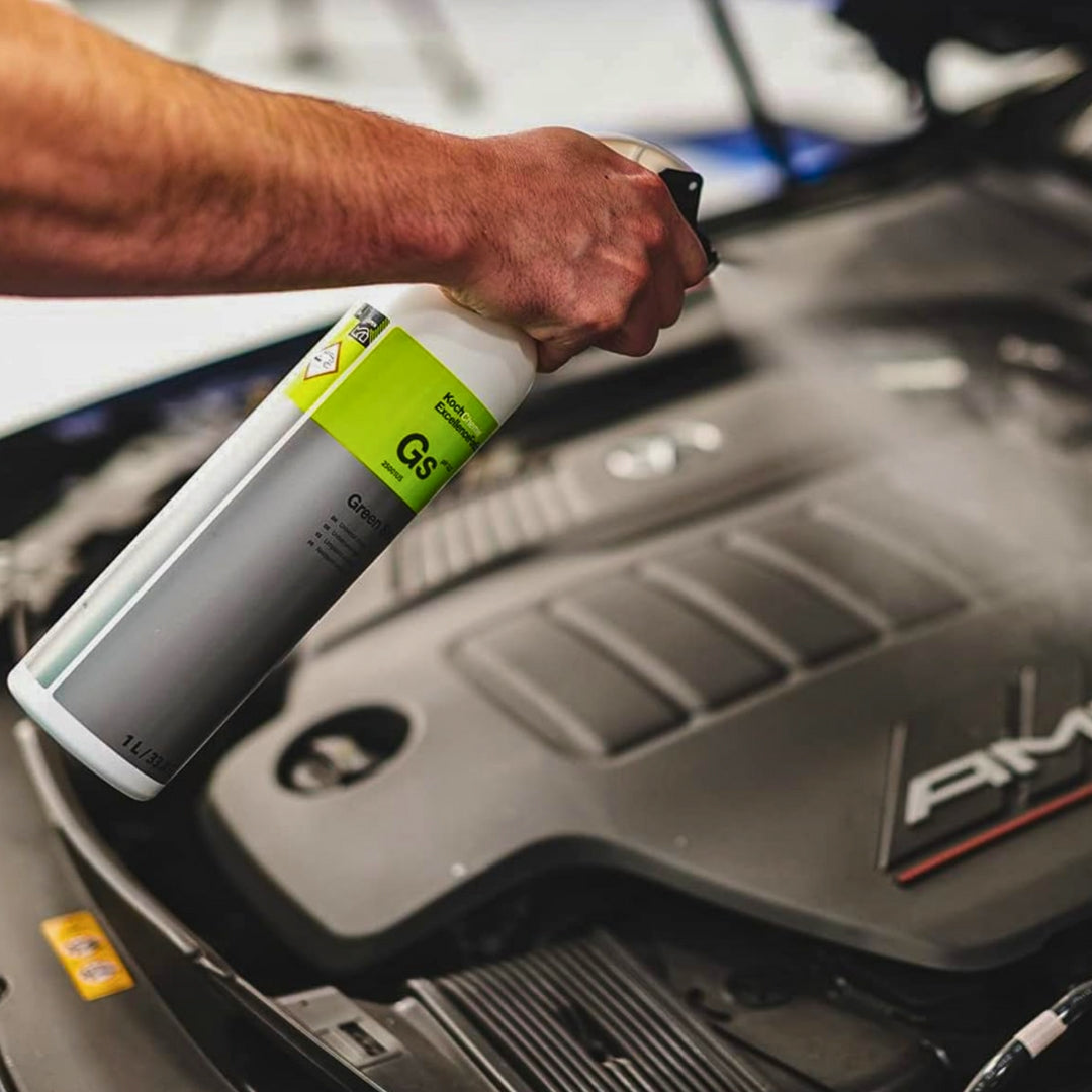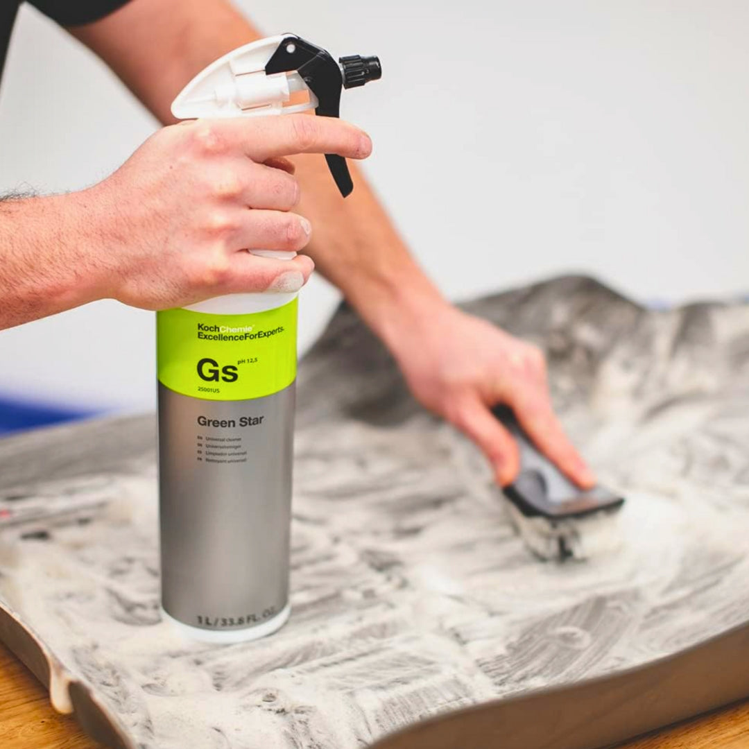 Green Star de Koch Chemie es un limpiador multifuncional concentrado, exento de fosfatos y disolventes, con características alcalinas. Su formulación lo hace ideal para múltiples usos, incluyendo la limpieza de suelos en talleres e instalaciones industriales, así como para limpieza de interior y exterior de automóviles y camiones, además del lavado de motores. Gracias a sus inhibidores de corrosión específicos, proporciona una alta tolerancia a materiales delicados, como el aluminio anodizado.