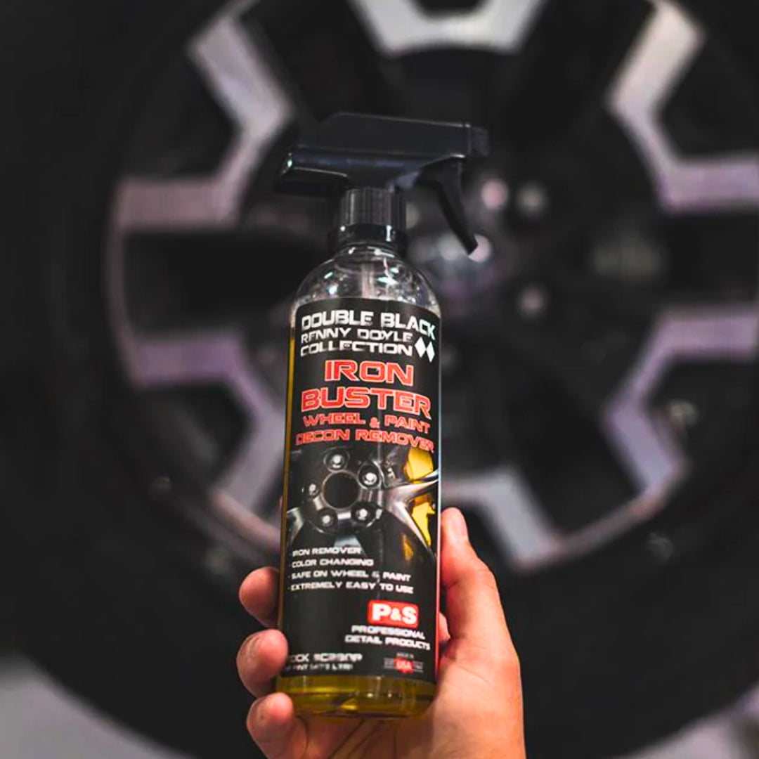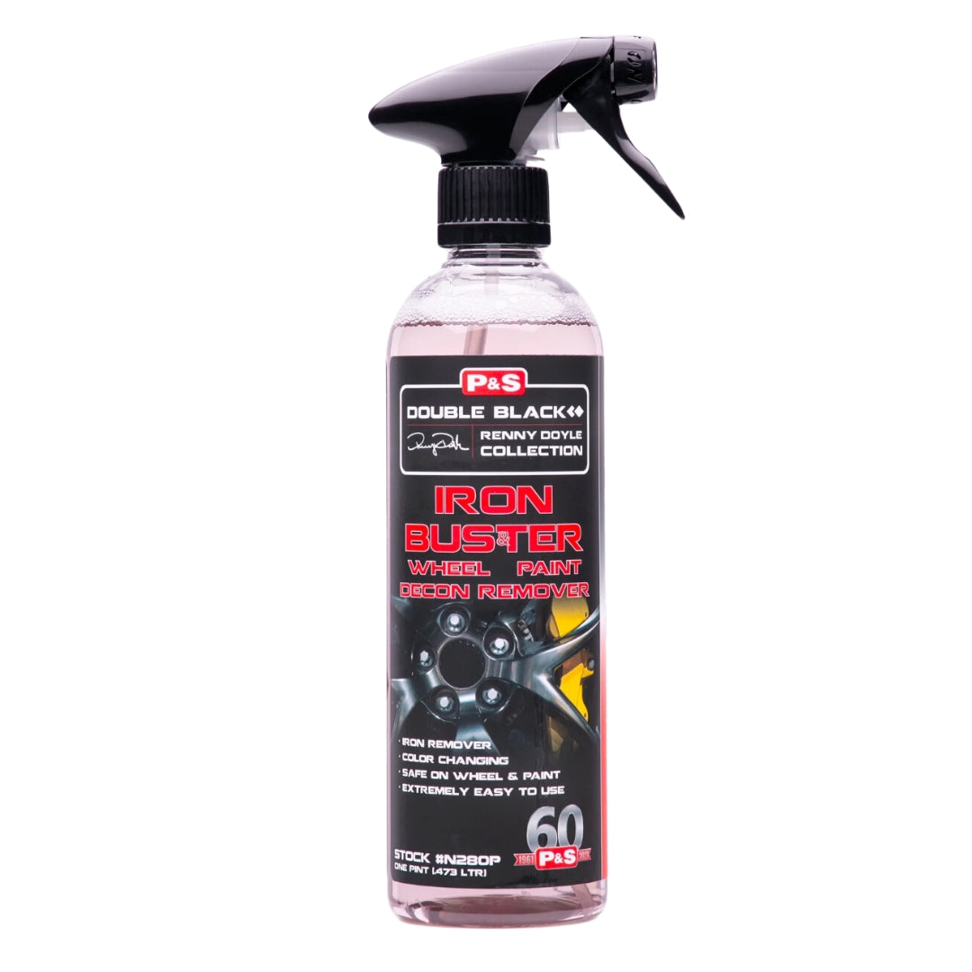 Iron Buster de P&S Detail es un descontaminante ferrico diseñado para eliminar partículas férricas, especialmente aquellas causadas por el polvo de frenos. Su característica de cambiar a un tono morado al actuar te permite identificar fácilmente las áreas contaminadas.