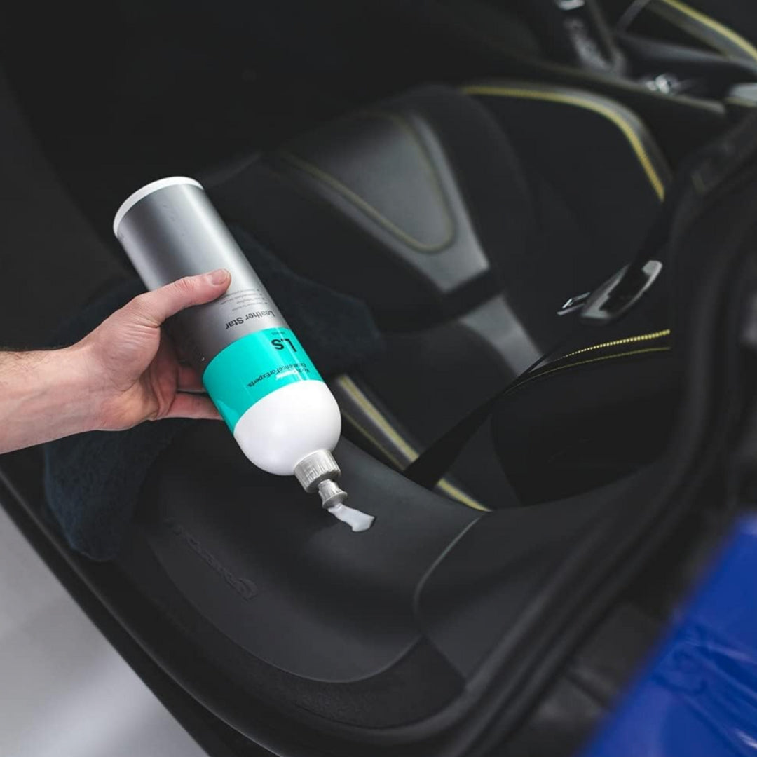 Leather Star de Koch Chemie es un acondicionador para piel que ayuda a renovar y preservar superficies de cuero. LS proporciona un acabado natural satinado, un aroma agradable, colores vibrantes y una textura suave que ofrece un buen agarre sin resultar excesivamente resbaladizo. Su formulación está lista para usarse, lo que facilita su aplicación. Puede aplicarse directamente con una microfibra o un aplicador.