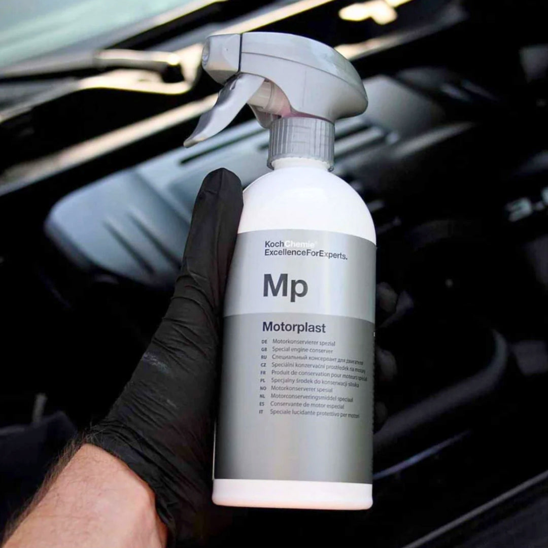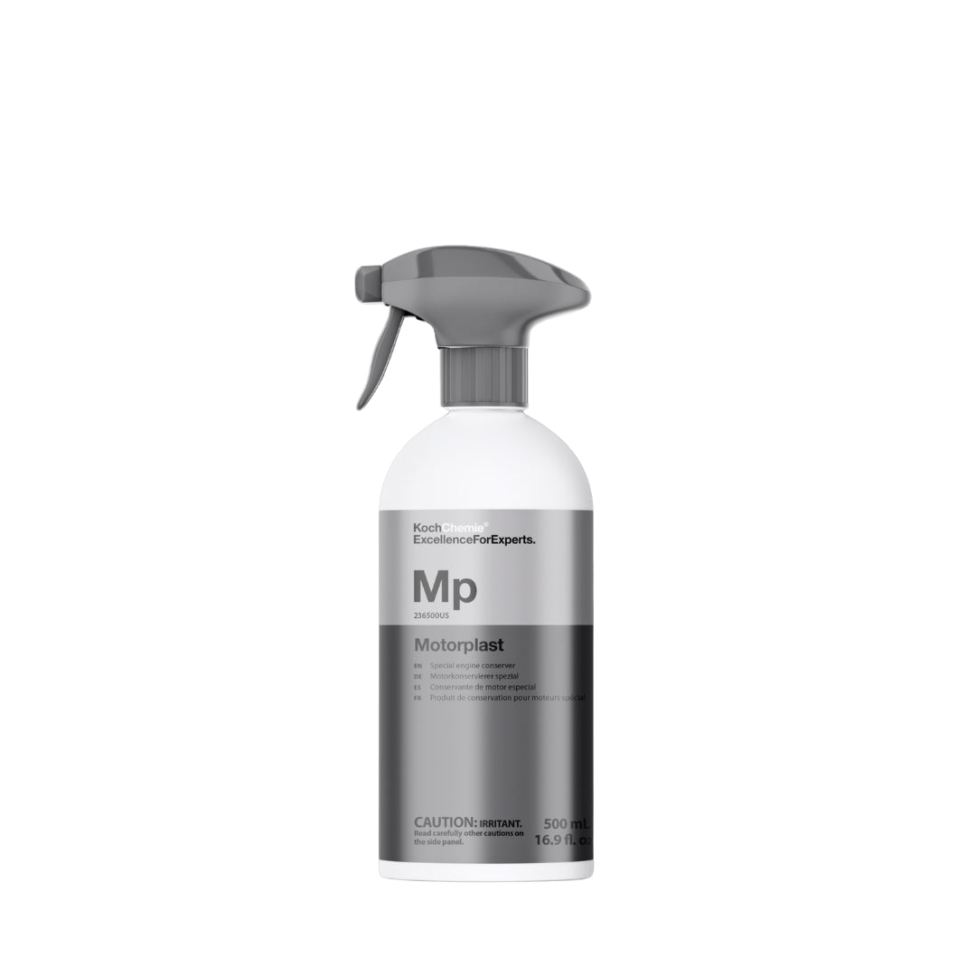 Motor Plast de Koch Chemie está diseñado para proteger los plásticos de las superficies de tu motor, ayudándoles a conservar su brillo natural y a repeler el agua y el polvo. Su formulación lista para usar proporciona una capa de protección contra la corrosión y factores ambientales, además de no contener aceites, lo que previene la adherencia de suciedad. MP se puede aplicar en superficies tanto secas como húmedas y es capaz de resistir temperaturas de hasta 250 grados Celsius.