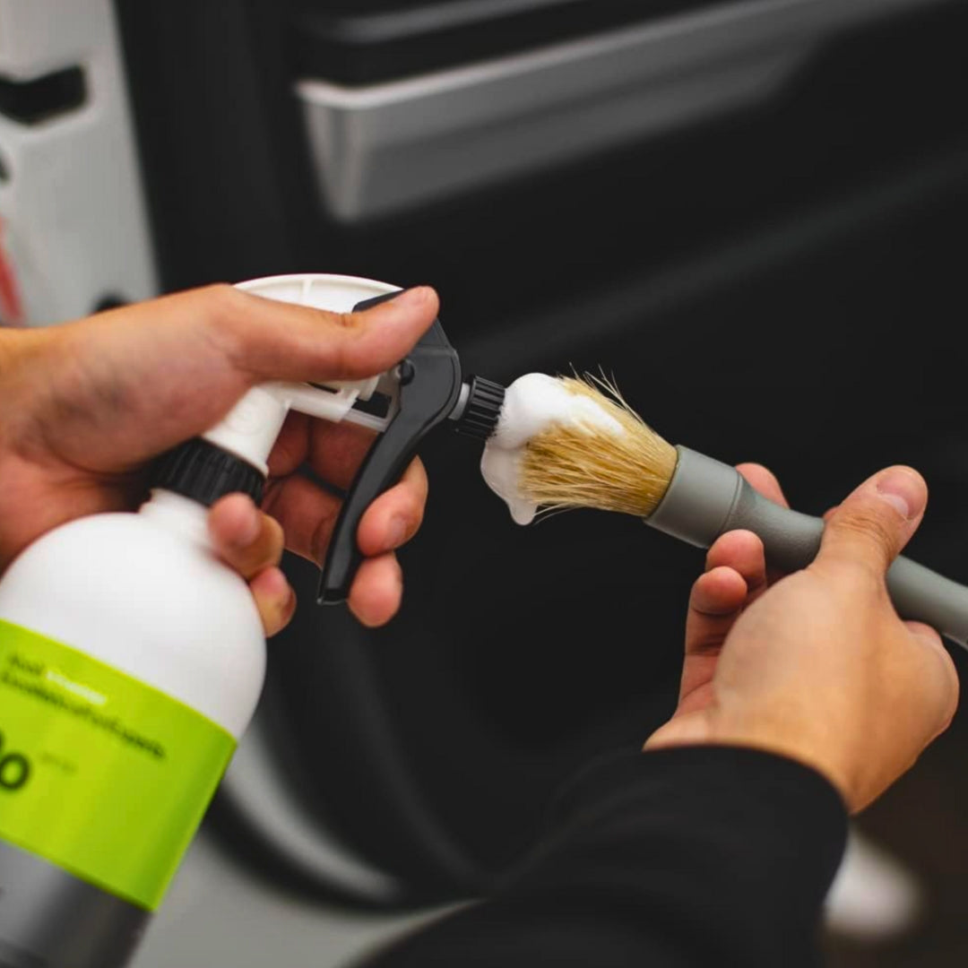 Pol Star de Koch Chemie es un limpiador diseñado específicamente para la limpieza de cuero, alcántara, telas y alfombras. Su formulación le permite ser un limpiador con pH neutro, lo que lo hace seguro para superficies y recubrimientos cerámicos cuando es necesario. No deja marcas de agua y preserva la impregnación original. Su capacidad de conservación ayuda a evitar que se ensucie nuevamente con rapidez.