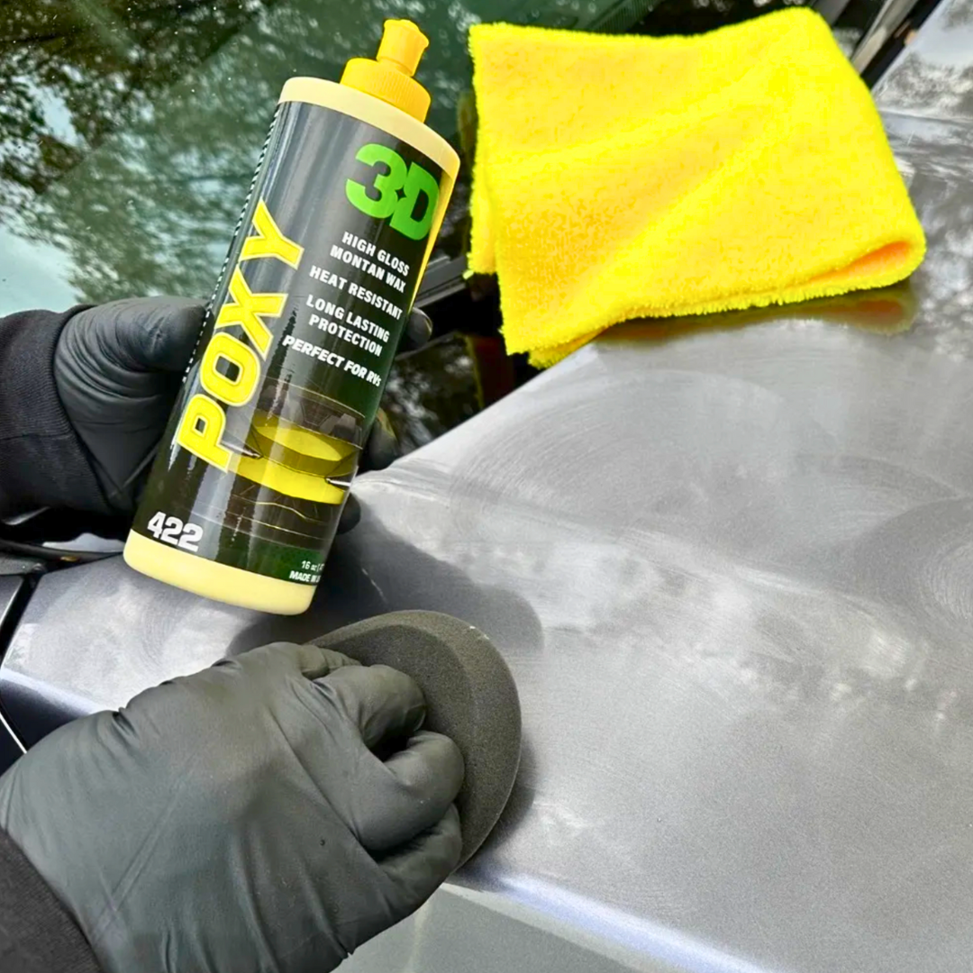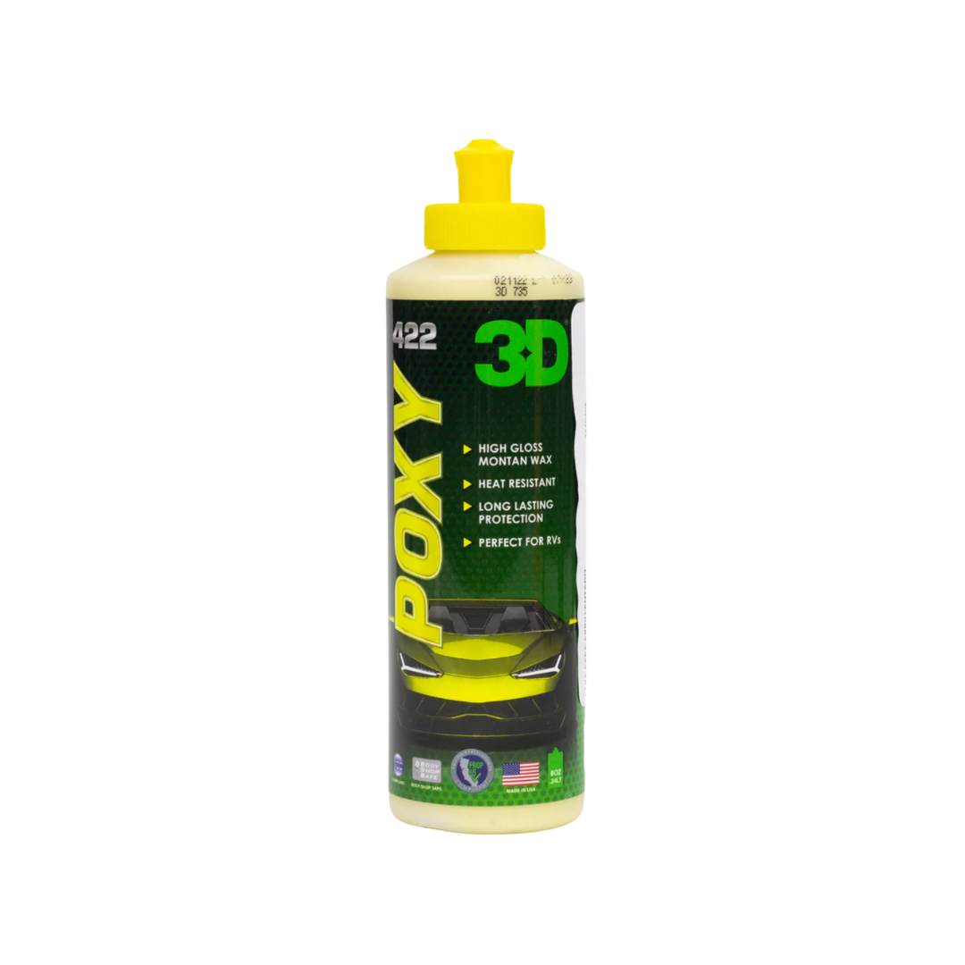Poxy de 3D Car Care es un sellador que incorpora nano polímeros y cera en su fórmula, diseñado específicamente para proporcionar protección y un brillo duradero. Contiene cera de montaña, lo que le permite derretirse a altas temperaturas, ofreciendo así una resistencia excepcional al calor.