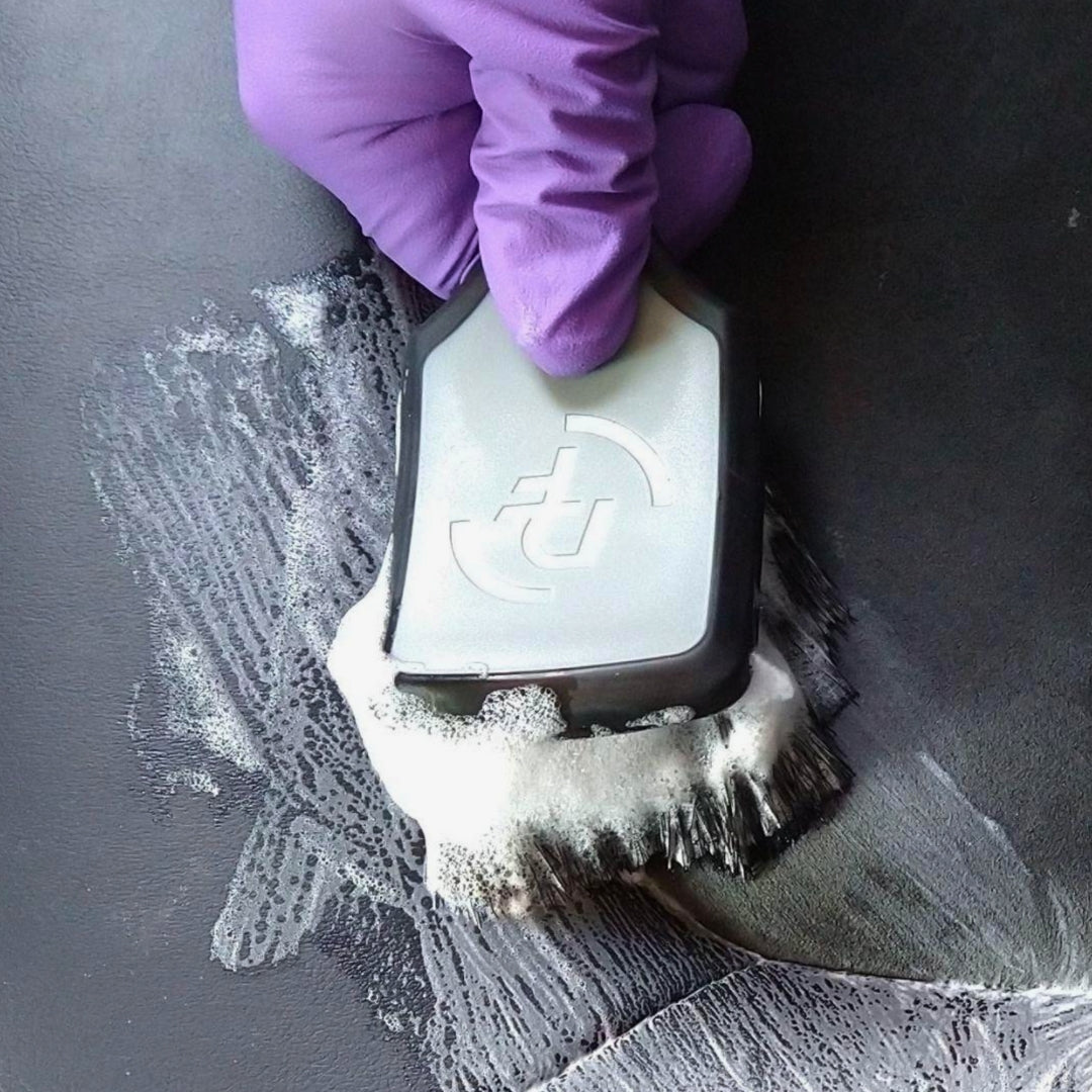 El cepillo ProGrip para interior de Detail Factory se destacan fácilmente entre otros por su alta calidad de fabricación. Están hechos de caucho para un mejor agarre, Tienen cerdas más suaves que las del ProGrip Tire Brush, pero no tan suaves como las ultra suaves, lo que lo convierte en la opción ideal para las partes interiores. También te recomendamos usarlo en tolvas que tengan textura similar a la de una alfombra.