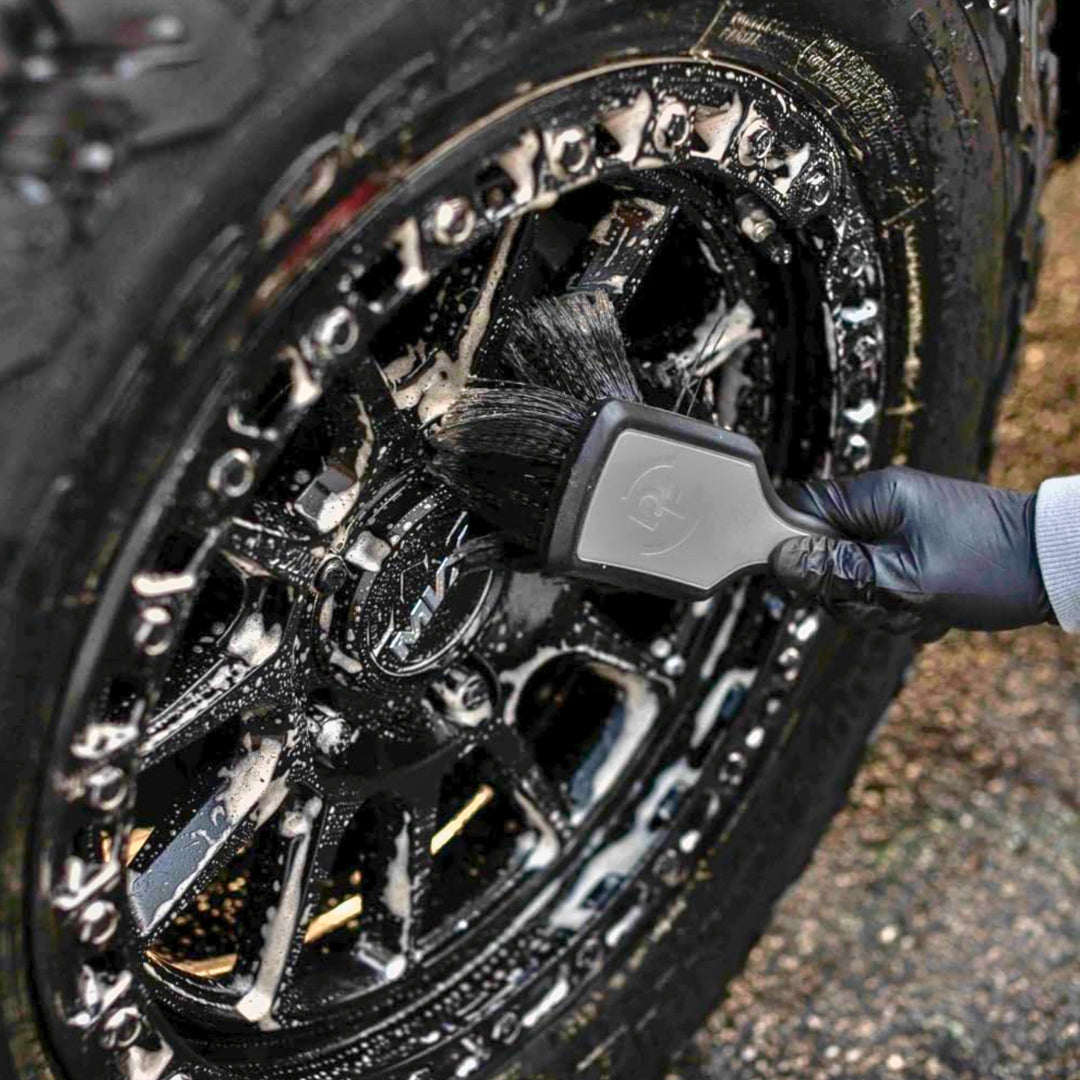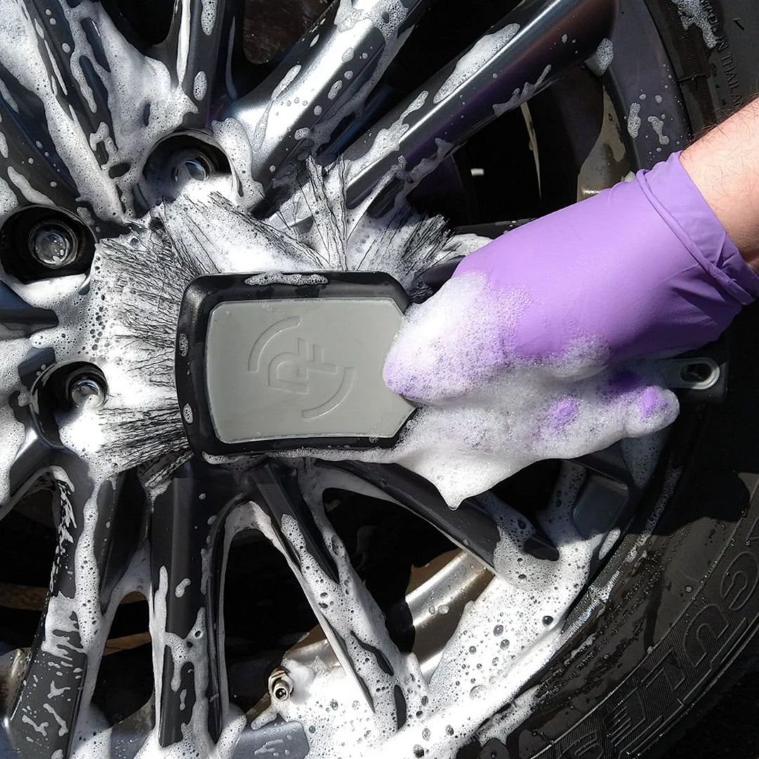 El cepillo ProGrip para cara de rines de Detail Factory es un cepillo enfocado para limpiar la cara externa del rin. Hecho con puntas suavizadas, lo que implica que las cerdas han sido desgastadas mecánicamente para hacerlas más suaves, previniendo así la formación de rayones y generando más espuma durante su uso. Su amplio tamaño te permite cubrir grandes áreas, mientras que las cerdas delgadas alcanzan lugares difíciles con gran detalle.