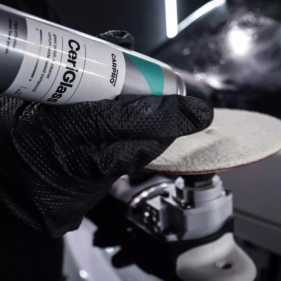 Rayon Pad de Carpro está diseñado específicamente para el pulido de vidrio. Cuenta con una avanzada fibra llamada "rayon", que ofrece un alto poder de corte y elimina sin esfuerzo manchas de sarro o ligeros rayones en los cristales exteriores de tu automóvil.