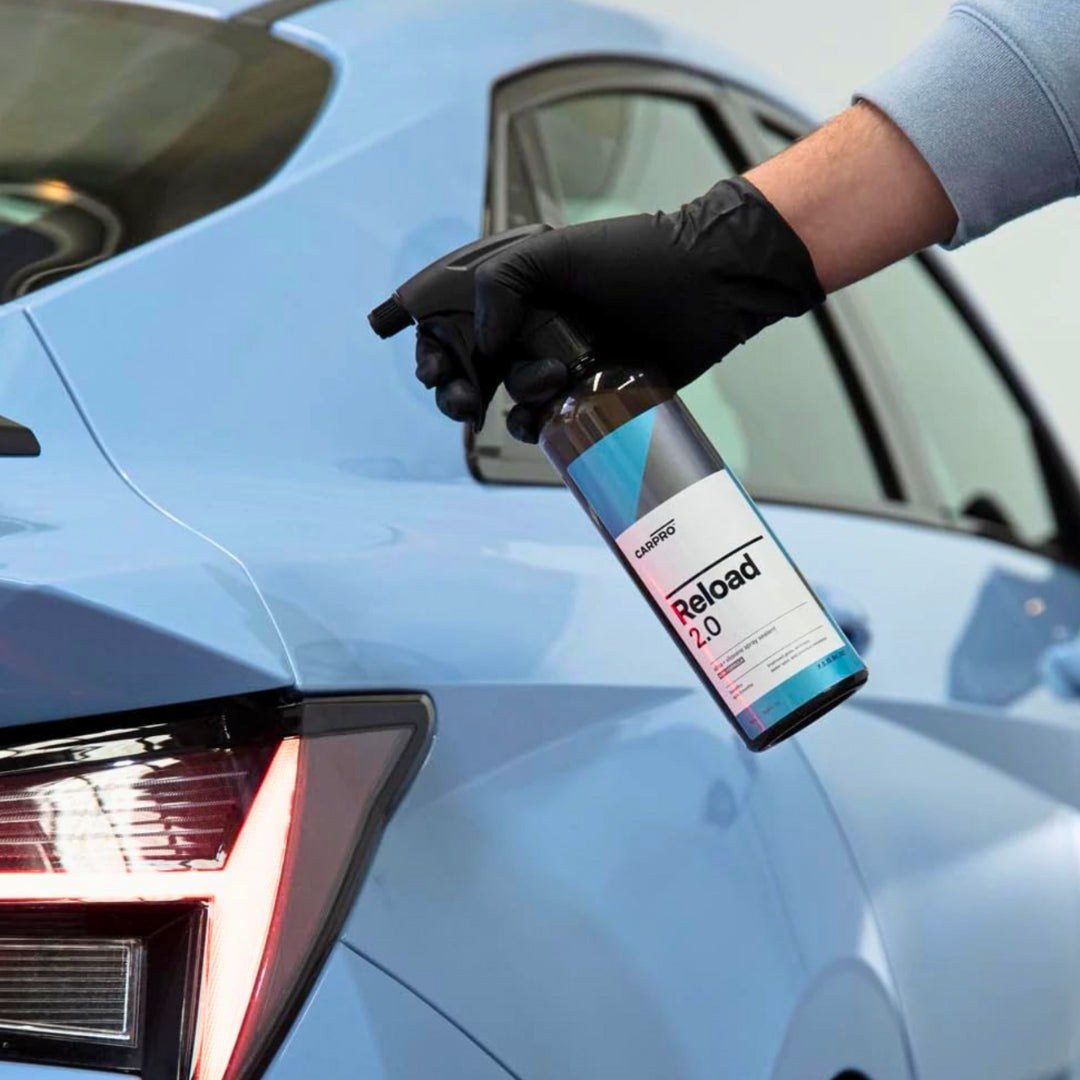 Reload 2.0 de Carpro es un sellador diseñado para proteger vehículos, ya sea que tengan recubrimiento cerámico o no, con una duración máxima de hasta 6 meses. Su fórmula a base de agua lo convierte en un producto seguro para todas las superficies de tu automóvil, incluyendo pintura, cristales, metales, plásticos, rines, entre otros, lo que lo hace perfecto para aplicaciones frecuentes.