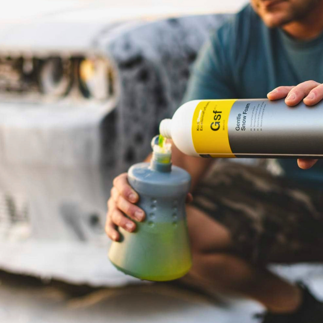Gentle Snow Foam de Koch Chemie es un shampoo concentrado de pH neutro diseñado específicamente para preservar superficies con selladores o recubrimientos cerámicos. Proporciona una capa de espuma uniforme y adecuadamente humedecida, que se adhiere a la superficie durante un tiempo prolongado, permitiendo un extenso tiempo de actuación, lo que la hace ideal para fases como los pre-lavados.