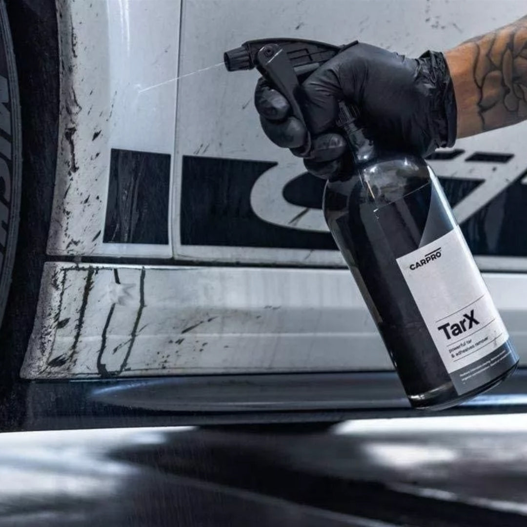 Tar X de Carpro es un eficaz descontaminante de chapopote, adhesivos y goma de árbol. Su fórmula está compuesta por ingredientes naturales que aportan un aroma cítrico. Su fuerte acción permite eliminar rápidamente cualquier contaminación incrustada en la superficie. Esto ayuda a disminuir el uso intensivo de clay bay, previniendo un desgaste futuro.Es seguro para usar en diversas superficies, como pintura, llantas, plásticos, aluminio, entre otros.