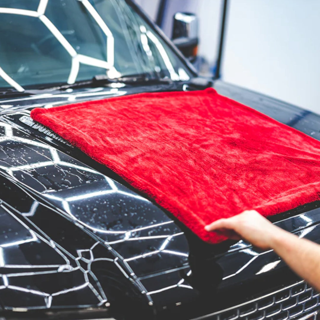 The 1500 de The Rag Company es su toalla de secado más grande e impactante, diseñada con un único propósito: ser altamente resistente y secar multiples automóviles con una sola toalla. Su exclusivo diseño híbrido con bucles retorcidos proporciona niveles excepcionales de absorción, ya que está fabricada con fibras coreanas en una mezcla de 70/30, alcanzando un gramaje de 1500 gramos. En comparación con otras toallas de secado de la misma marca, como la Gauntlet y la Liquid8r, la 1500 ofrece una experiencia de secado más sólida.