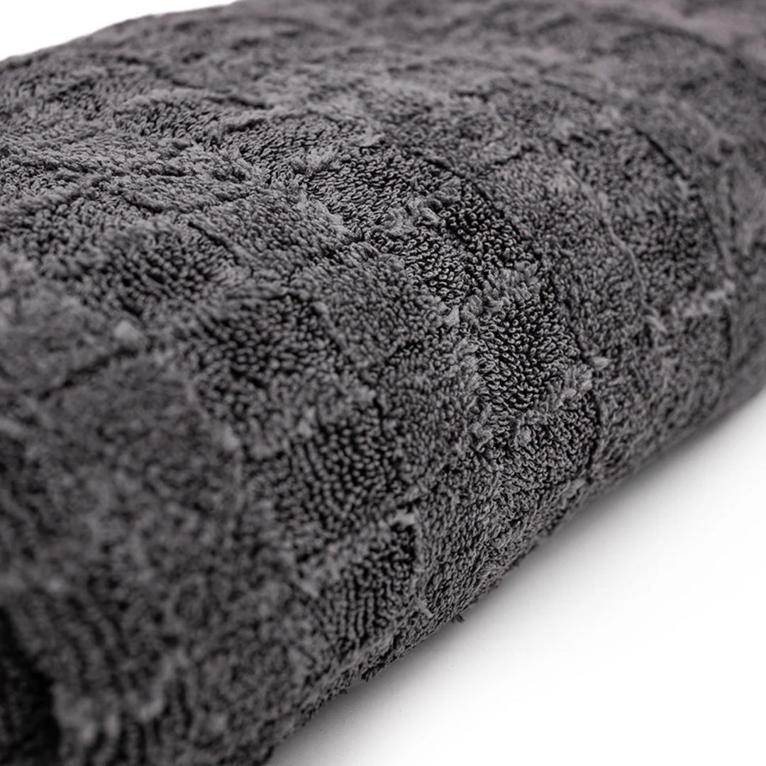 The Gauntlet de The Rag Company es una toalla de alta calidad ideal para trabajos como secado y aplicaciones de quick detailers. Su diseño híbrido y exclusivo con bucles retorcidos proporciona niveles de absorción excepcionales, ya que está fabricada con fibras coreanas en una mezcla de 70/30, logrando un gramaje de 900 gramos. Además, su borde de gamuza ButterSoft, exclusivo de la marca, garantiza que no causará ningún daño en las superficies.