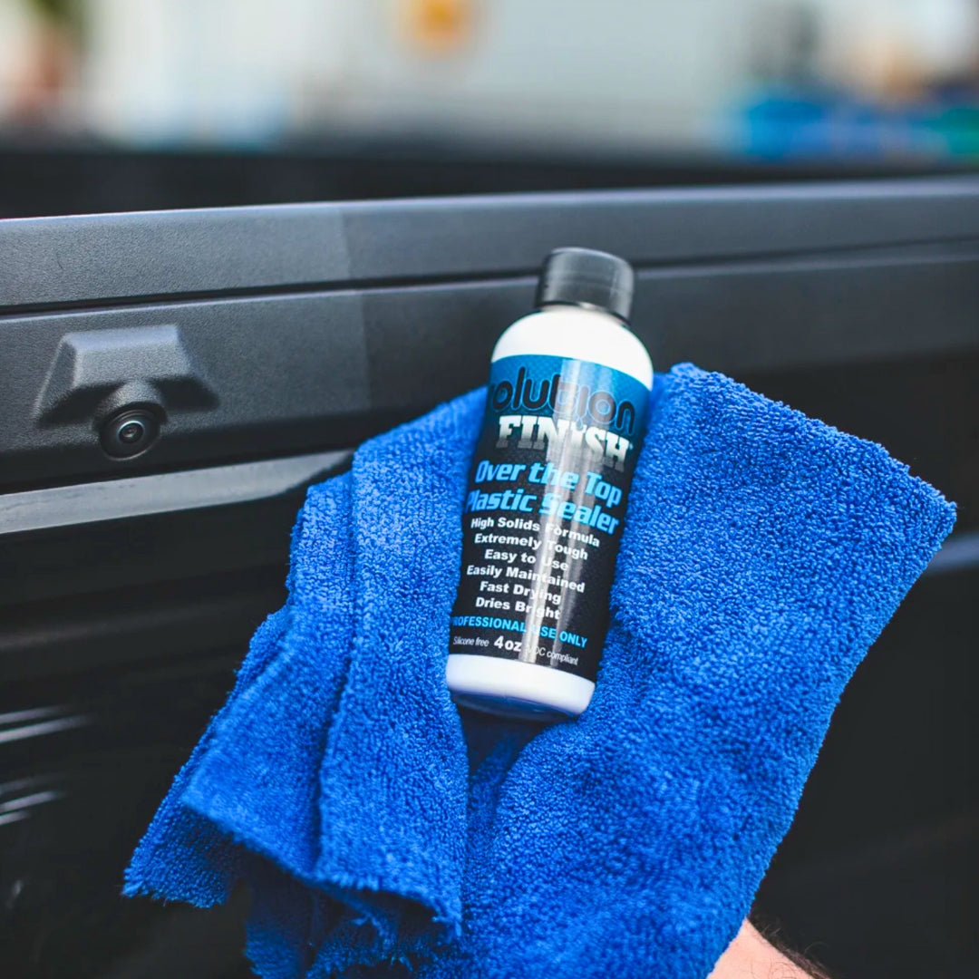 Top Plastic Sealer de Solution Finish es un protector de larga duración diseñado para molduras de plástico, ya sean nuevas o restauradas. TPS está especialmente formulado para fijar el acabado de las molduras restauradas tras el uso de Solution Finish negro o gris fusión, y también puede emplearse como un sellador independiente. Combina lo último en dureza y resistencia a los rayos UV con un sellado brillante y transparente.