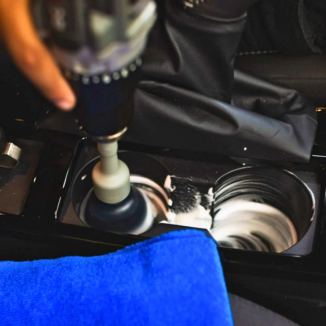 La brocha de detallado TriGrip de Detail Factory ha evolucionado su diseño al incorporar una nueva opción que puedes utilizar con tu taladro, llamada Drill Brush. Este innovador producto está diseñado para limpiar rápidamente cualquier superficie, siendo también ideal para acceder a los espacios profundos que suelen ser difíciles, como los portavasos.